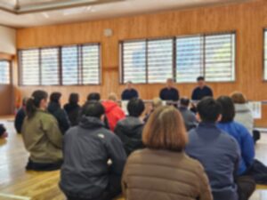 全国審査の受審を希望する20から70歳代の剣士18人が、午前中は山中範士より講話・日本剣道形の指導を受講しました。